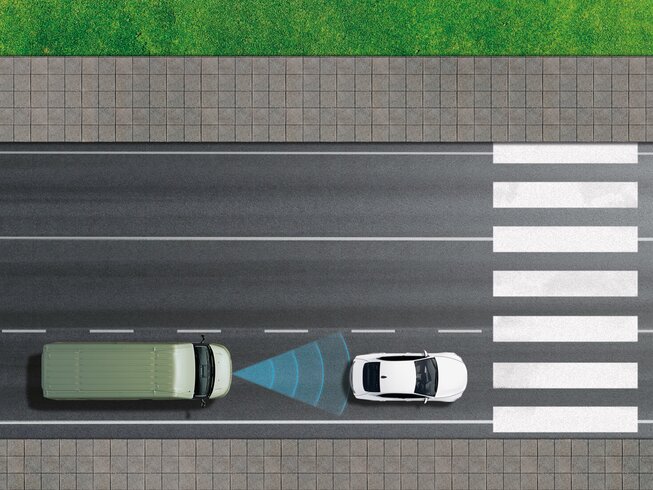 Im dichten Verkehr hilft die City-Brake, Zusammenstöße bei niedrigen Geschwindigkeiten ab 5 km/h zu vermeiden.